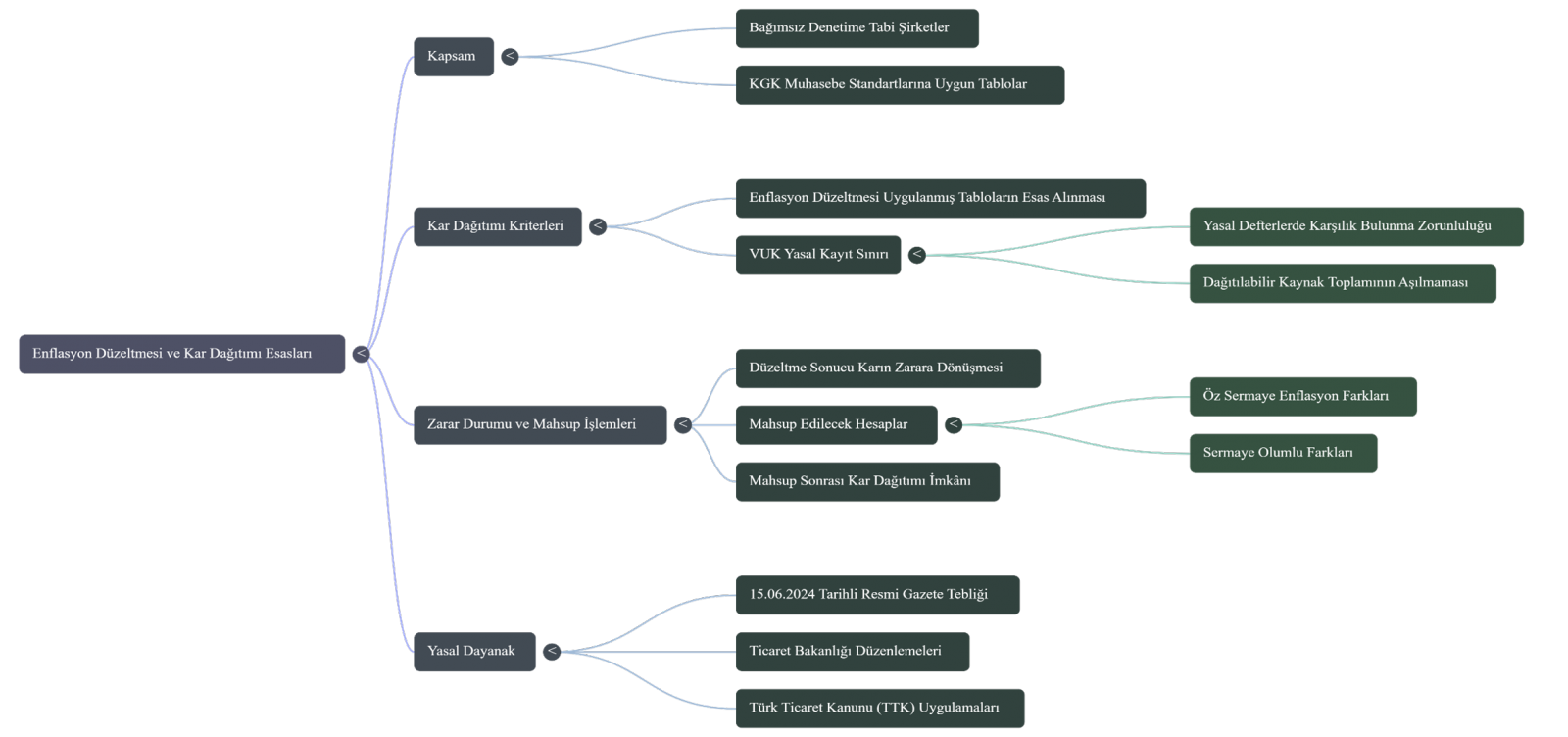 Enflasyon düzeltmesi yapılan 2023 ve 2024 yıllarına ilişkin kar dağıtımında bu şirketlerde enflasyon düzeltmesi uygulanmış finansal tablolar dikkate alınacaktır. Ancak bu tablolara istinaden dağıtılacak kazançların Vergi Usul Kanunu’na göre tutulan yasal defterlerde karşılığının bulunması gerekmektedir. Aksi durumda yasal kayıtlarda yer alan tutarlarla sınırlı kar dağıtımı yapılabilecektir.